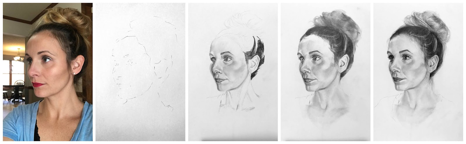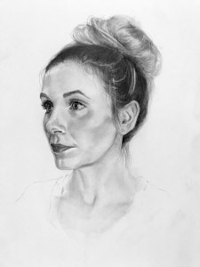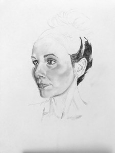 I usually start with a client sending me photographs. Not all photographs make good portraits. Its also good to have several different pictures of the subject so I can get a better idea of how they look. I probably took 2 dozen of myself to get the perfect light and angle. Next I use a projector to project the image onto my paper so I can do a quick sketch for sizing. This step has saved me so much time. I use to agonize on the size of the subject and in the end wishing I’d just drawn it a half an inch smaller. So with the projector I can size the subject up and down until I find the perfect size. I leave it at a quick sketch, if you put too much detail in at this step I feel it makes the portrait less dynamic. After the quick sketch, I lay in the shadows and highlights in large sections. And from here on out its all a matter of connecting these shadows and highlights like a puzzle. This is my favorite part of the process. The final step is to pull out the highlights and add the fine details like eyelashes, stray hairs and eyebrows. The last thing I do is spray the portrait with a fixative so it doesn’t smudge. Then I wrap it up, mail it out and spend the next three days hoping the client is happy when they open it up. Every portrait is different and each has its own sets of challenges and I really do learn something new from each one. I find myself smiling as I’m drawing sometimes because I do really love drawing portraits, bringing life to a photo is one of my greatest joys. But I feel I’m meant for more.