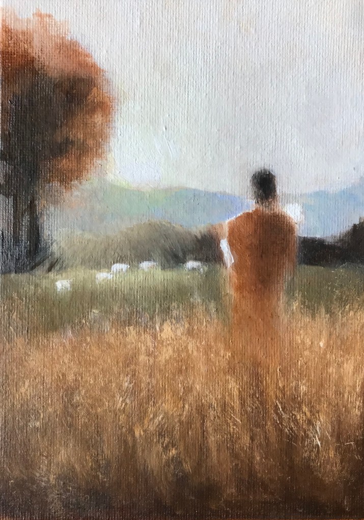 Over the years I’ve thought about the two dreams she described to me. For me, this painting has always been something I wanted to create. I imagine its early morning, the sun is breaking through the trees. The Shepard has spent the whole night searching for His one lost sheep. Having found him, he takes it back to the flock. My hope is that this image will bring someone else the peace that it brought my grandmother. And I hope she knows how her faith has inspired me.